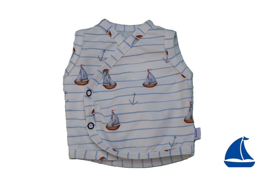 Prematuur Couveuse Overslaghemdje Pim – Wit met Blauwe Bootjes 🍼